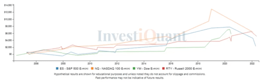 Note: Most tests/studies here are done going long using Future Indices. This is done for several reasons; so you can easily compare different studies/tests, and because of the high correlation of these Indices to other instruments. The Daily IQ is typically an End of Day analysis without stops/targets. You can use Discover to test/study other potential trades with numerous stop/target values. You can make comments below.